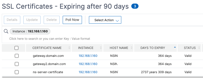 NetScaler Console can also give you the same view, only consolidated one of all the Certificates across all the NetScaler Appliances that it manages, a bit like this: