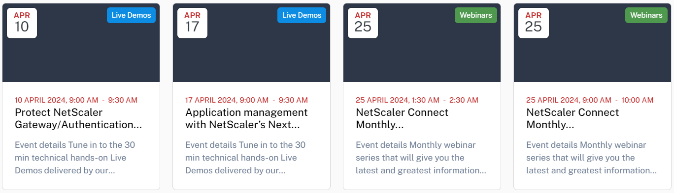 25 April - NetScaler Connect Monthly Webinar-APJ/EMEA/Americas (it runs at two different times to cover the areas)